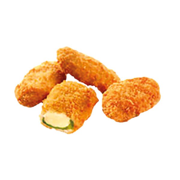 CEM Distribution vous propose les Jalapeños Verts Cheddar Panés en sachet de 750g, pour un apéritif croustillant et savoureux qui saura ravir vos clients. Ces piments jalapeños verts frais sont soigneusement sélectionnés et farcis d'une généreuse garniture au cheddar fondu, puis panés à la perfection dans une chapelure dorée et croustillante.